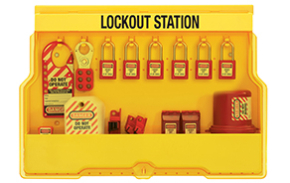 - Covered compartments protect lockout devices from dust, dirt and grime